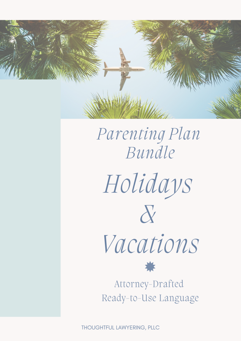 This holiday and vacation parenting plan bundle includes customizable provisions to help parents navigate school breaks, major holidays, special occasions, and travel. Designed to reduce conflict and ensure fairness, it outlines clear expectations around scheduling, communication, travel logistics, and expense-sharing. This bundle provides the structure needed to co-parent smoothly during the most meaningful times of the year.